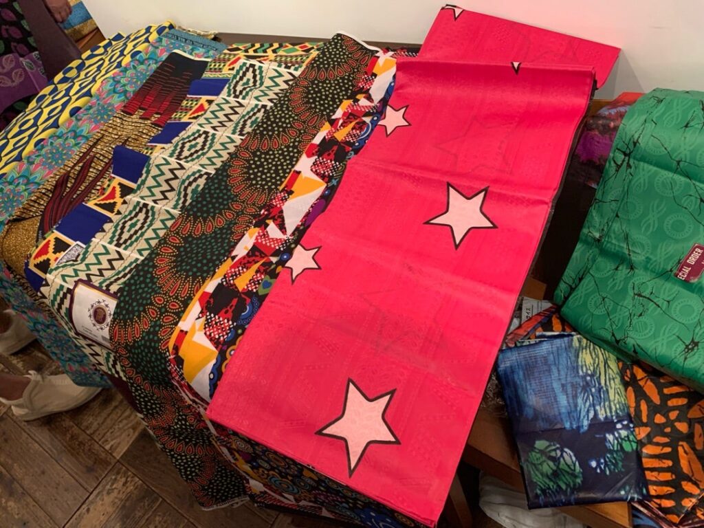 - 体験: アンカラ布 で作られたファッションアイテムを試着、デザイン体験